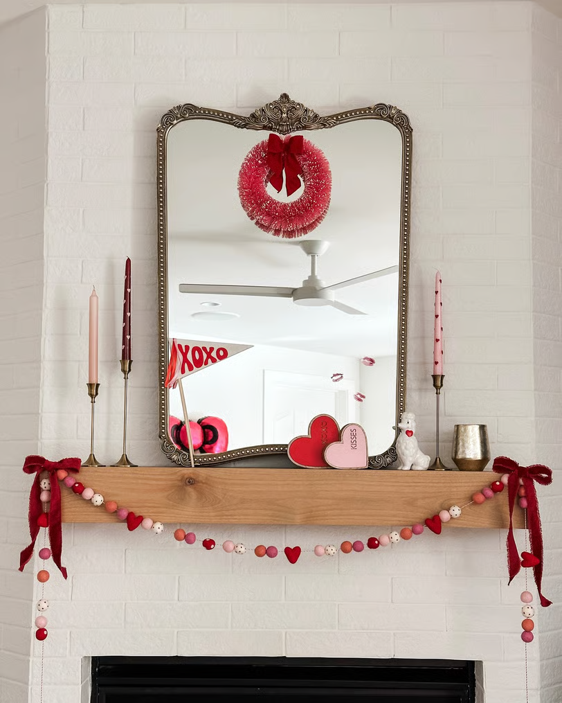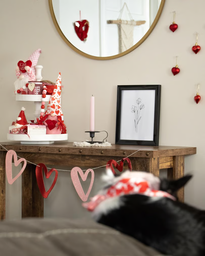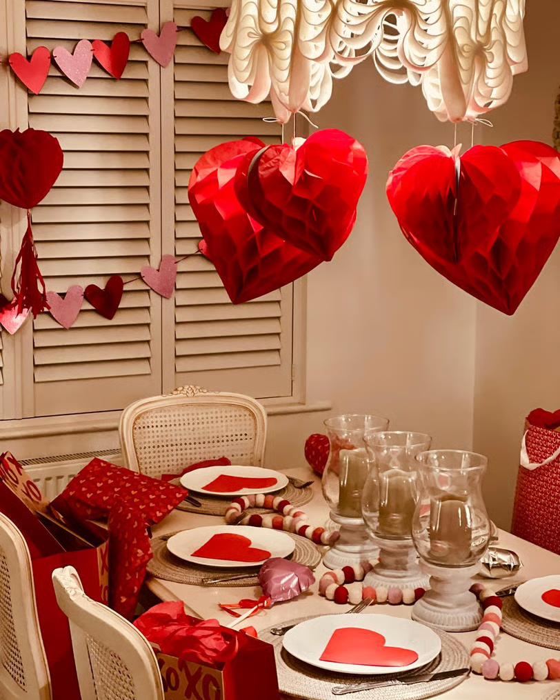 Drape heart-shaped garlands across mantels, windows, or doorways. These simple yet eye-catching decorations instantly bring the Valentine’s spirit to life. For a DIY touch, create your own garlands using paper or fabric in varying shades of red and pink.