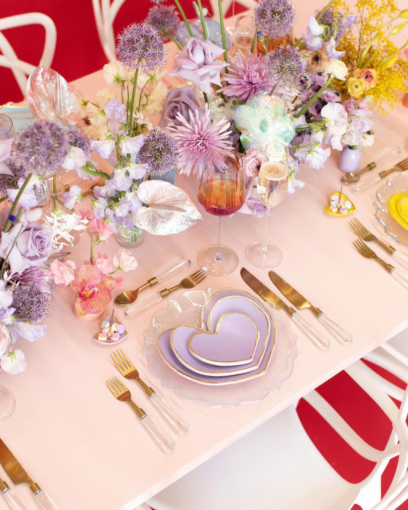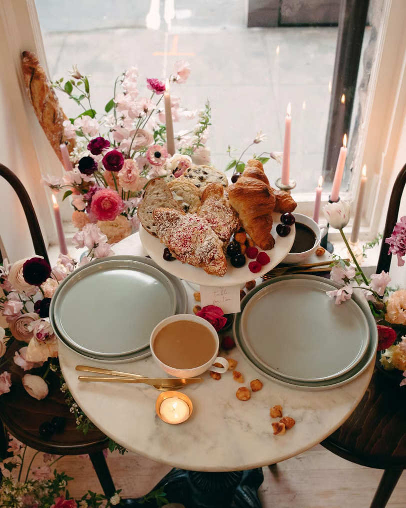 Set the scene for a memorable meal with a beautifully curated table. Choose heart-shaped plates or serveware and incorporate romantic hues like red, pink, or gold. Add layers with textured tablecloths, cloth napkins, and elegant glassware. A centerpiece of fresh flowers and candles can add an extra layer of charm, making every detail feel intentional and romantic.