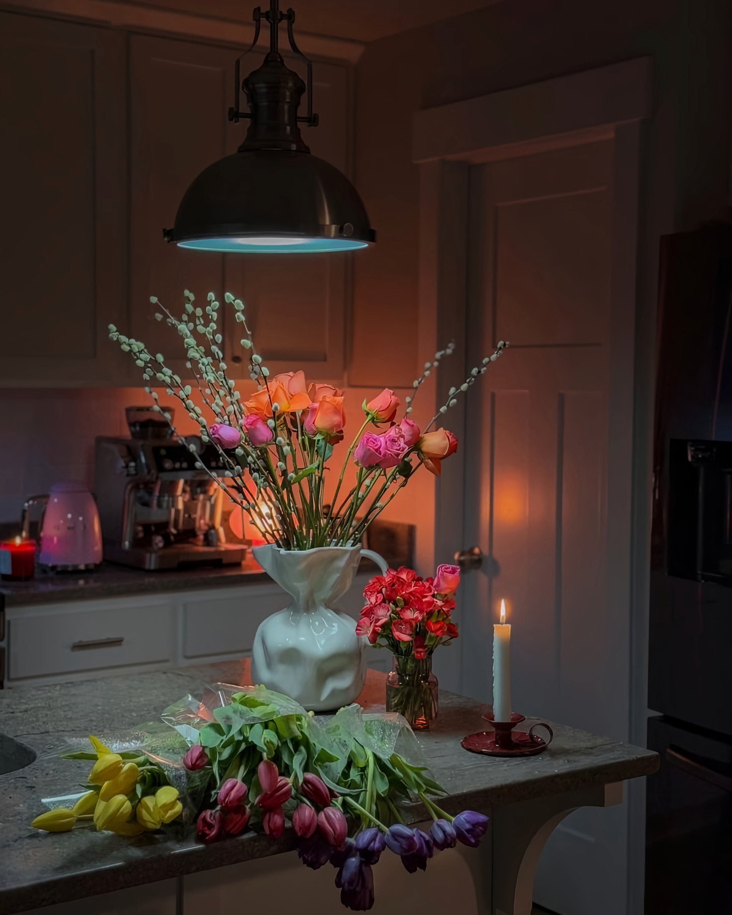 Your kitchen might not seem like an obvious space for romantic decorating, but it’s often where special meals are prepared and meaningful conversations happen. The approach here should feel warm and celebratory without being overly formal.