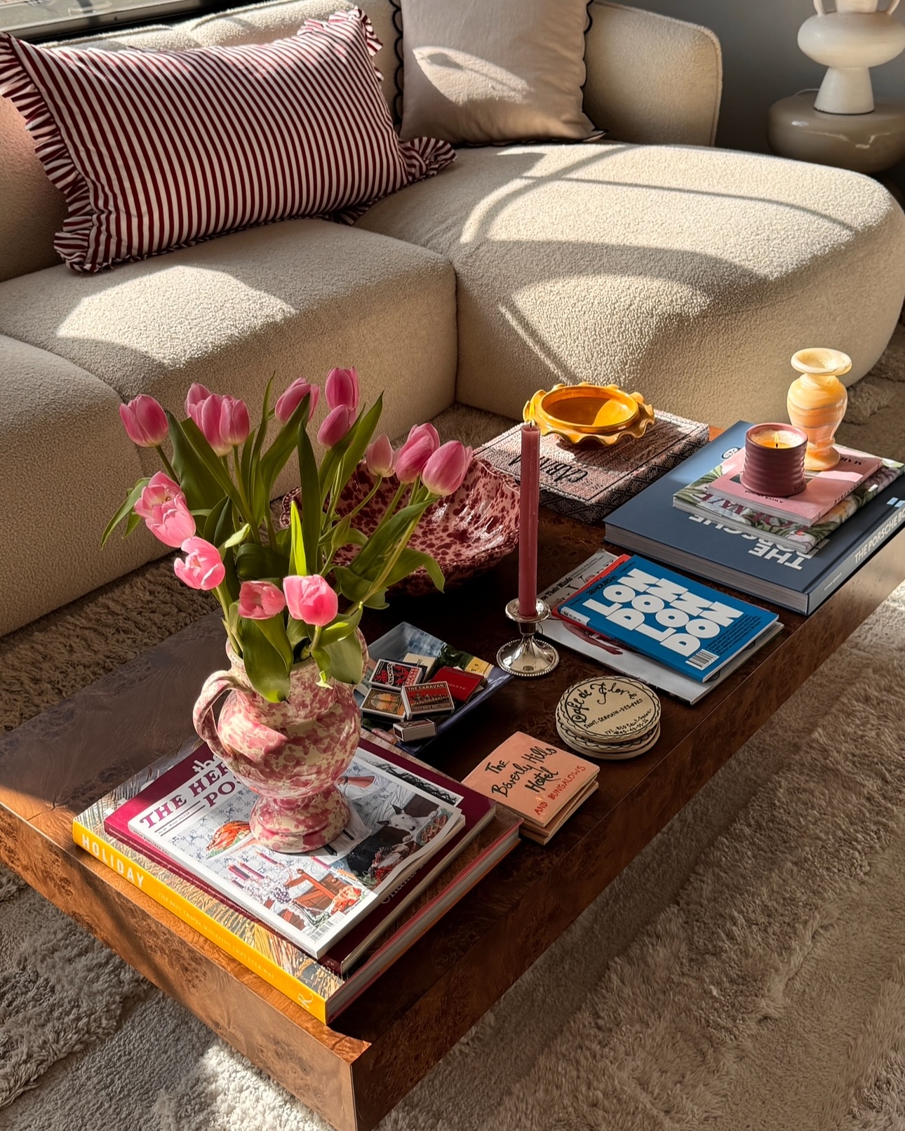 Your coffee and side tables offer opportunities for curated vignettes. A tray with candles, a small vase of flowers, and a meaningful book or magazine creates an intentional focal point. Avoid clutter — aim for visual interest, not cover-every-inch décor.