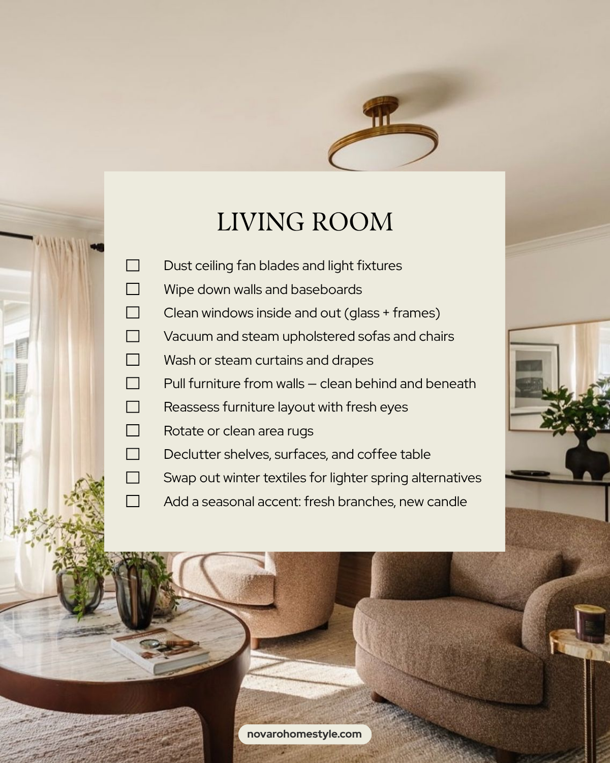 For a structured, room-by-room framework to support your seasonal refresh, check out the Novaro Home Spring Cleaning Checklist.